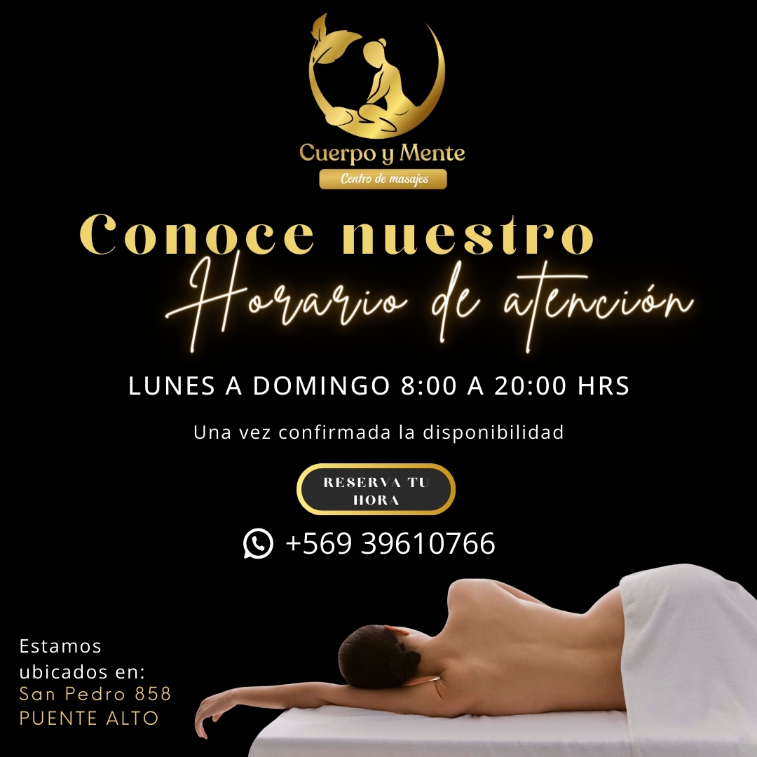Disponemos de un horario amplio para que se ajuste a tus tiempos. Puedes agendar de Lunes a Domingo de 8:00 a 20:00 hrs.